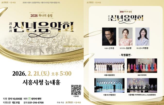 시흥시가 지원하고 (사)한국예술문화단체총연합회 시흥지회에서 주관하는 ‘2026 시흥시 신년음악회- 하나의 울림’이 오는 2월 21일 오후 5시, 시청 늠내홀에서 개최된다.